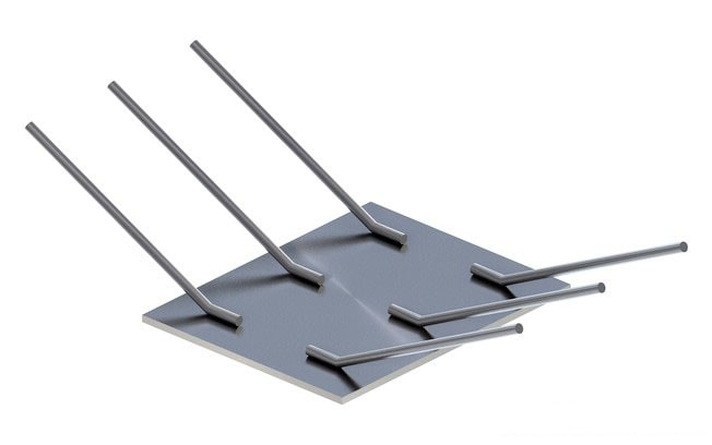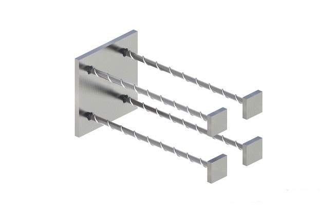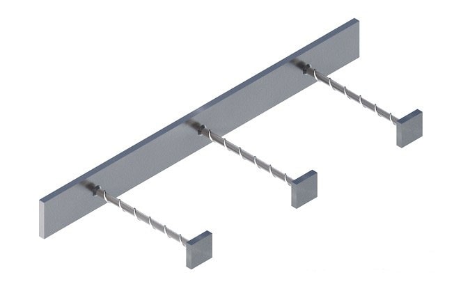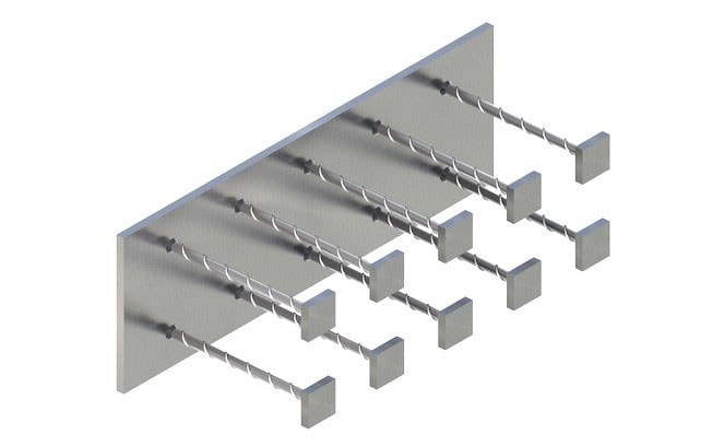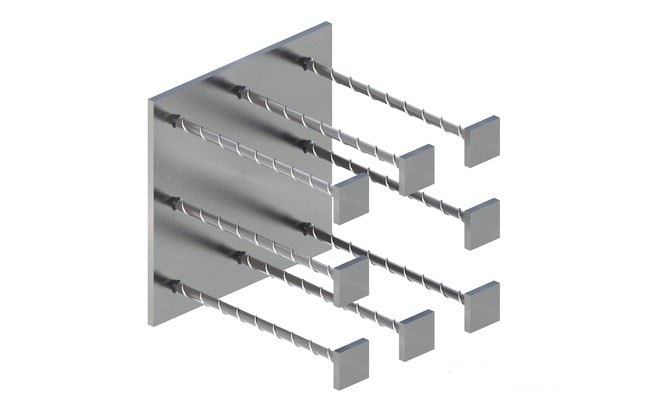 Закладные детали представляют собой стальные пластины с приваренными анкерными болтами из арматуры, уголков, полосы, металлического профиля или швеллера. Эти изделия устанавливаются в фундамент до начала бетонирования, причем наваренные стержни частично остаются над поверхностью стяжки. В дальнейшем к ним крепится технологическое оборудование, металлические или железобетонные элементы здания, что позволяет создать монолитную и прочную конструкцию.